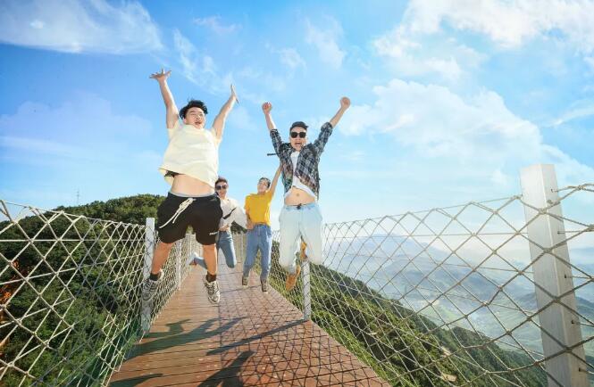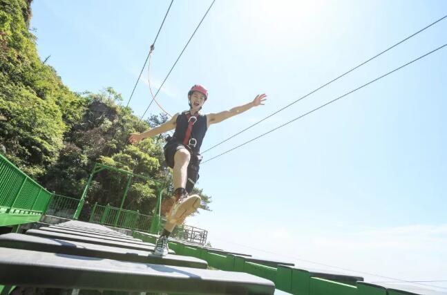凌空飞步是在峭壁之上的悬空步道,悬于高空,附于巨石,桥面之下就是百米悬崖,小心翼翼地走每一步。