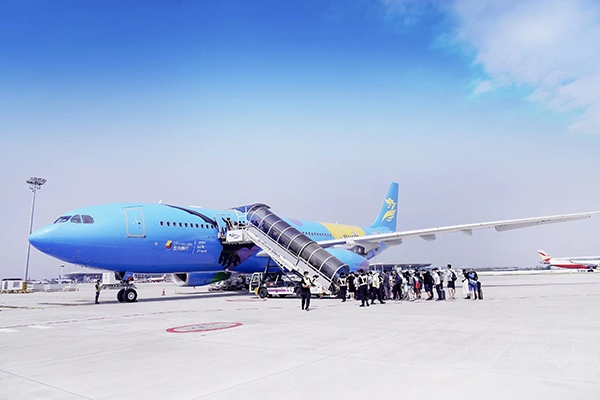 据了解,这架环球主题的首客首享专机,由首旅集团旗下三家企业——北京环球度假区、首旅慧科、首都航空共同打造,专门用于接送全国各地的游客来北京体验环球度假区。专机后续将覆盖重庆、杭州、武汉、广州等国内十余个主要城市,为“环球迷”们开通了一条空中的“绿色通道”。