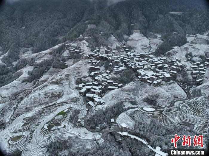 1月22日,广西龙胜各族自治县龙脊梯田雪景。