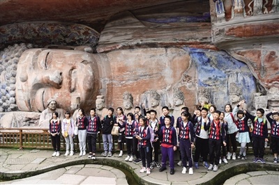 参加研学活动的学生在大足石刻景区留影。记者 王全超 摄