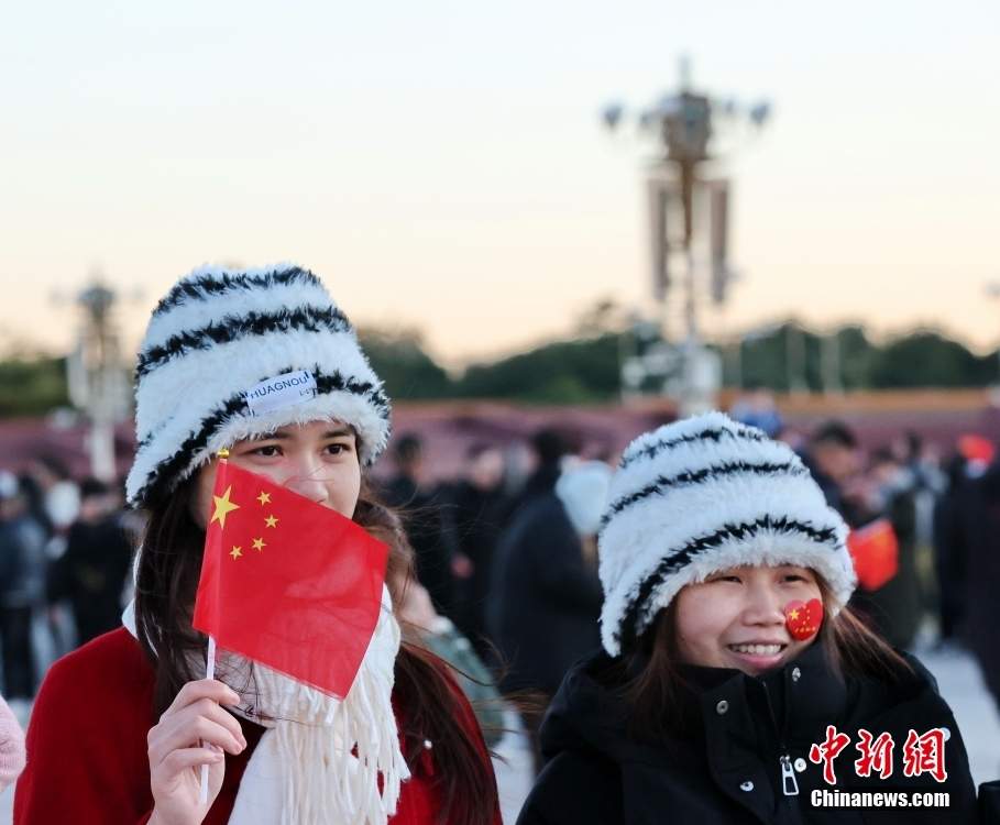 11月4日,受冷空气影响,北京迎来大风降温天气。图为寒风中游客“全副武装”游览天安门广场。