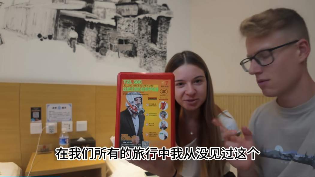 外国游客称赞中国酒店里的“过滤式消防自救呼吸器”。