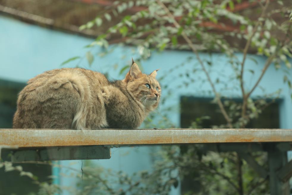 沿着豹馆前方的石板路一路向上,抵达小型猫科动物馆——这是国内唯一能看到荒漠猫的场馆。