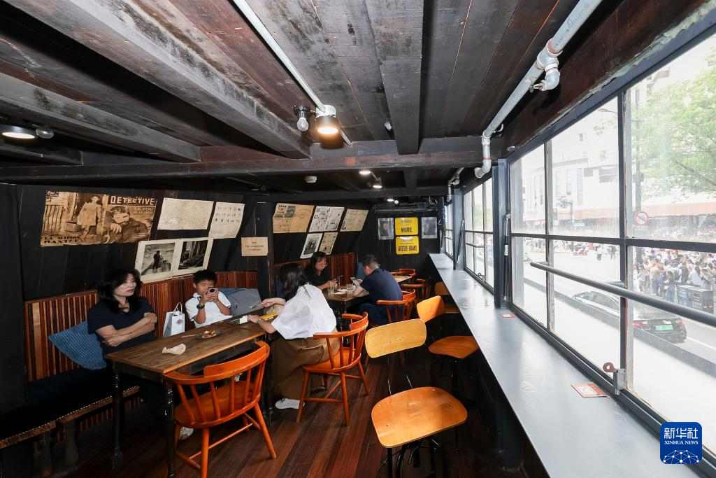 6月2日,人们在位于上海市黄浦区汉口路上的The Press咖啡馆喝咖啡。