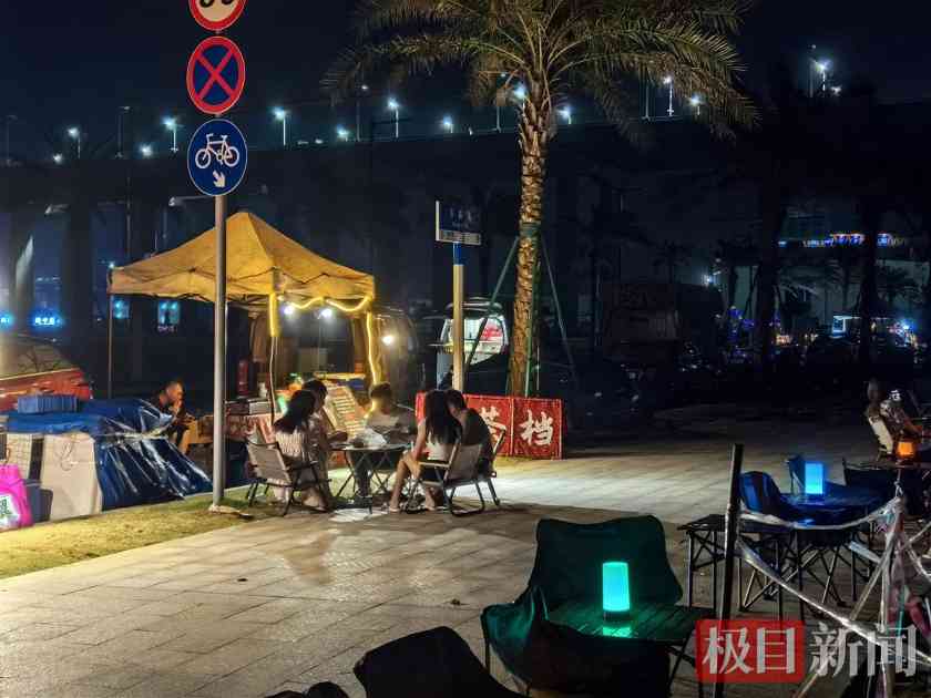 26日凌晨2时,深中大桥下马鞍岛的海岸线上,已经有不少人聚集。有过来等待日出的,也有不少商家拉起彩灯,摆摊卖饮品,卖小吃的。更有三五成群的家人和朋友,在海岸上摆起了折叠桌椅,煮上了火锅,一边吃东西一边等待日出。该日出打卡地曾一度登上微博热搜。
