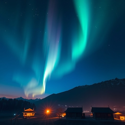 磁暴发生的同时,随着太阳物质高度的进一步下降,其与地球南北极区附近上空的大气发生接触,最终形成极光。